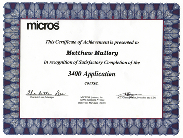 - Webmaster/Web Site Administrator Certification from Syracuse University